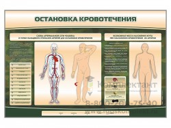 Электрифицированный стенд-тренажер представляет собой полноцветную информационную панель с комбинированной световой индикацией. На стенде-тренажере изображена артериальная сеть человека с обозначением мест возможного кровотечения вследствие различных травм, точек пережатия артерий для быстрой остановки кровотечения и областей наложения жгутов. В конструкцию учебного оборудования интегрированы высокочувствительные сенсоры для управления стендом при помощи интерактивного воздействия приемо-передающих устройств во время обучающего процесса.