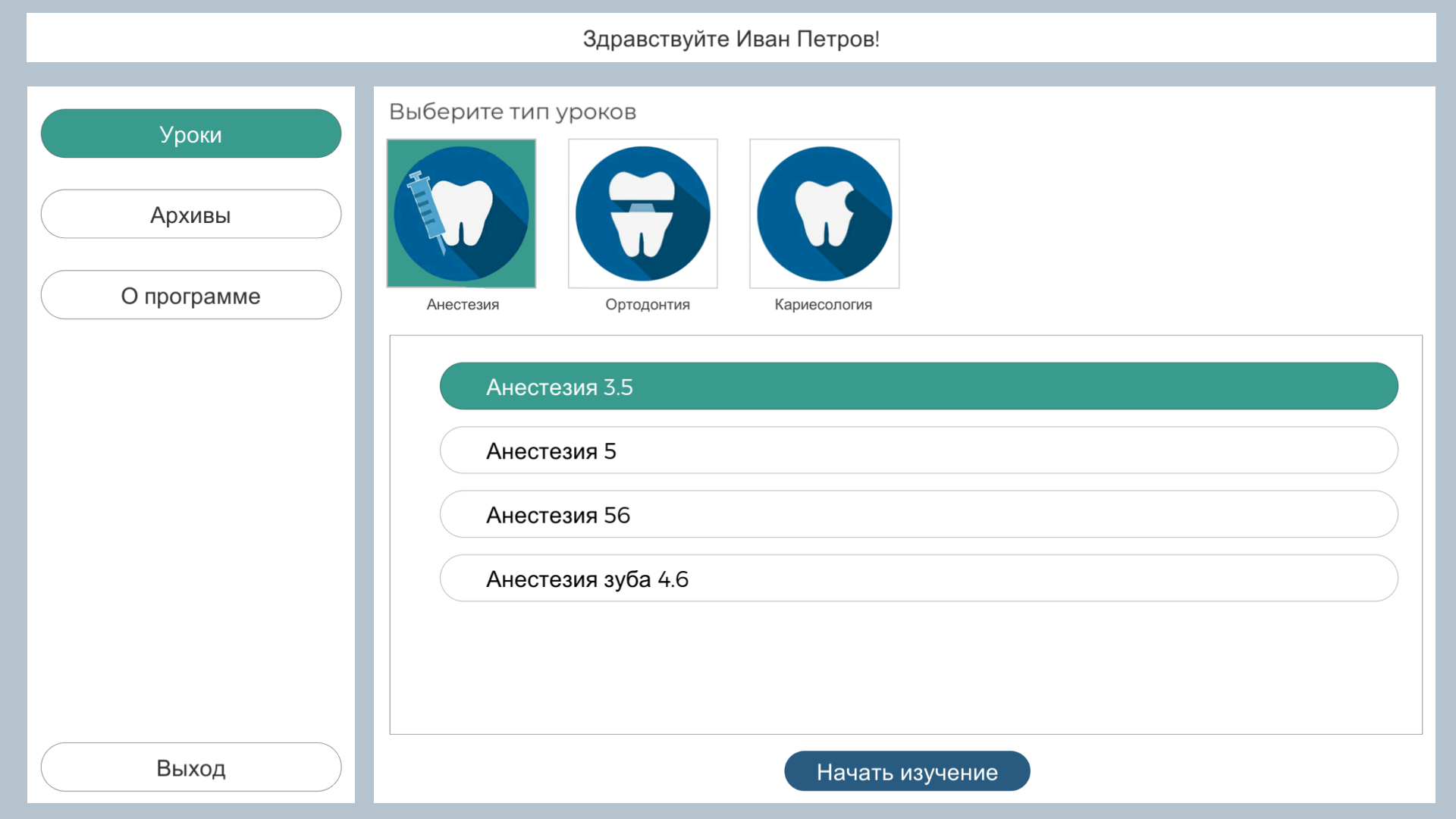 Каждый урок представляет собой законченный модуль с данными анамнеза, изображениями, наглядными инструкциями и видео-роликами по выполнению манипуляций.