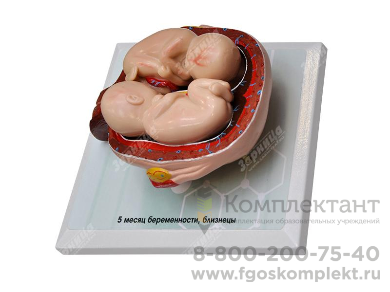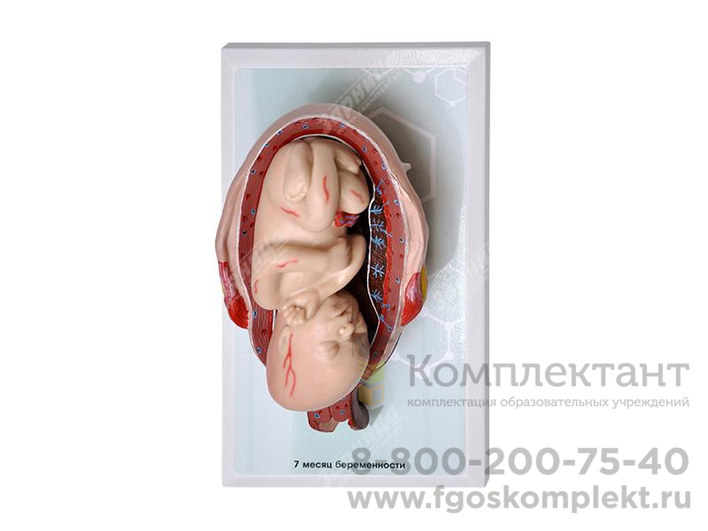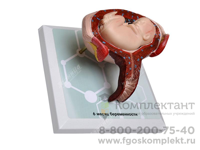 Комплект демонстрационных моделей отражает динамику топографо-анатомических особенностей этапов пренатального развития человека от одного до семи месяцев беременности. Модели выполнены из полимерных материалов, реалистично воспроизводящих свойства тканей матки, зародыша, плода, а также плаценты и пуповины. Передняя стенка матки на препаратах отсутствует, в целях визуализации ее полости и возможности извлечения плода. Отдельная модель воспроизводит вариант развития близнецов. Изделия расположены на удобных подставках, с которых при необходимости легко снимаются.