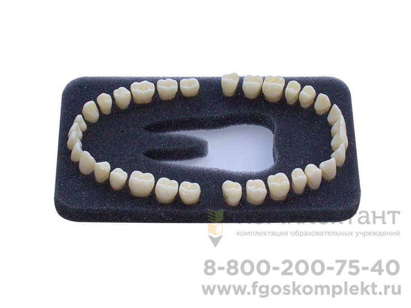 Комплект из 32 модельных зубов естественной формы с винтовым креплением для установки в денто-модели с окклюдатором "ЧВН-320". Материал зубов по своим физическим характеристикам максимально приближен к естественным.