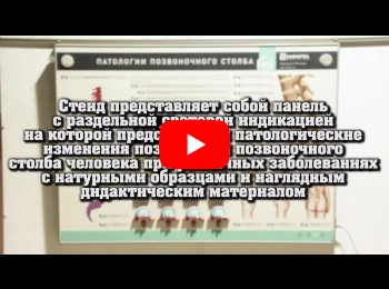 Электрифицированный стенд предназначен для приобретения и закрепления студентами образовательных медицинских учреждений базовых знаний о заболеваниях позвоночного столба и морфологических изменениях при данных заболеваниях.