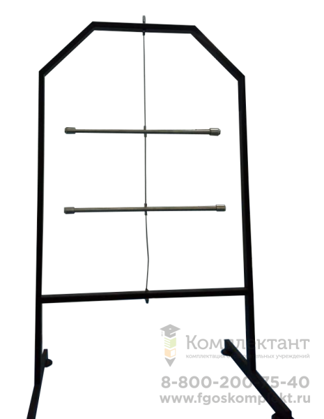 Интерактивный экспонат 2 - демонстрирует момент инерции. Посетитель располагает грузики на одинаковых расстояниях от оси вращения, затем отклоняет один из маятников от первоначального положения на угол не менее 30 градусов, при этом второй маятник остается неподвижным. Затем посетитель повторяет эксперимент, отпустив первый маятник.