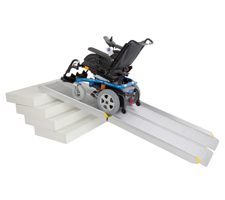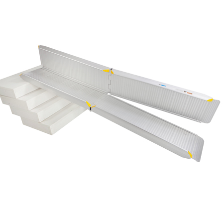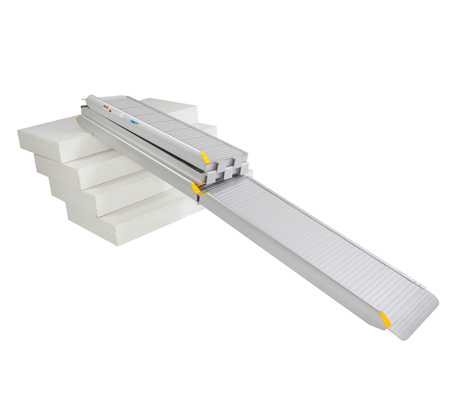 Пандус четырехсекционный для кресел-колясок. Складной, с ручкой для переноски, выполнен из анодированного алюминия, поверхность противоскользящая рифленая.