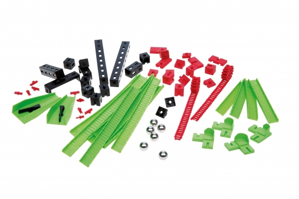 Набор отлично подойдет для маленьких изобретателей, которые хотят сделать свои маршруты для шариков ещё более увлекательными и непредсказуемыми. Он позволит сделать ваши горки больше, круче и опаснее, добавив в них скорости и драйва. Для этого в набор входят специальные угловые элементы, улавливающие воронки, короткие и длинные желобки.