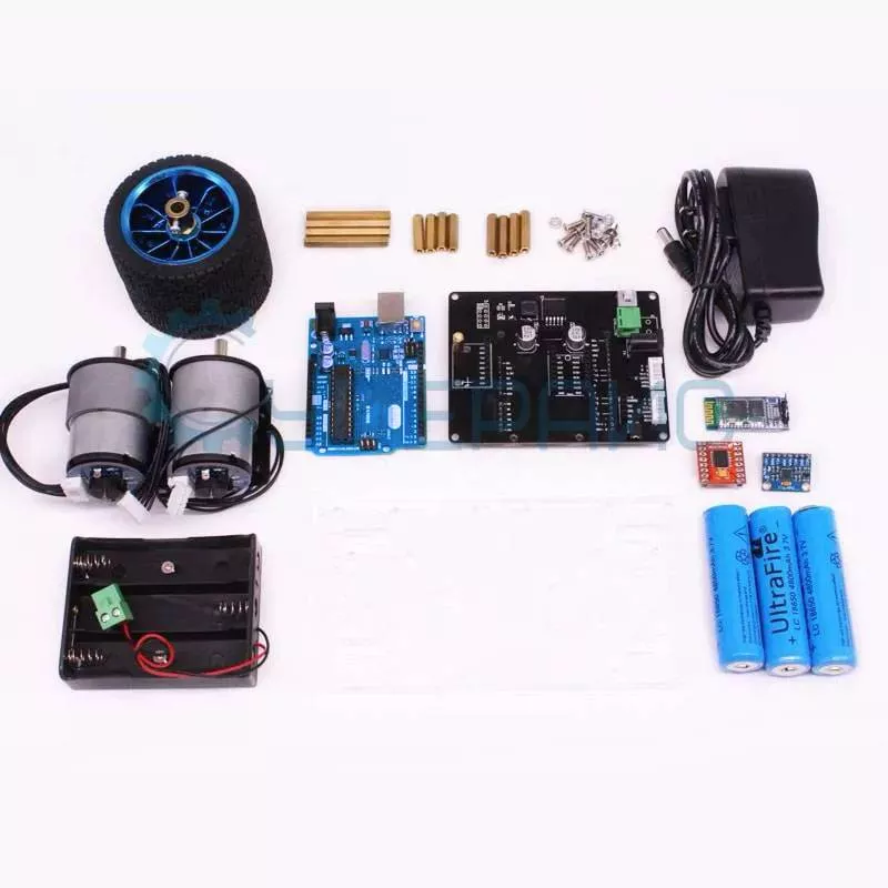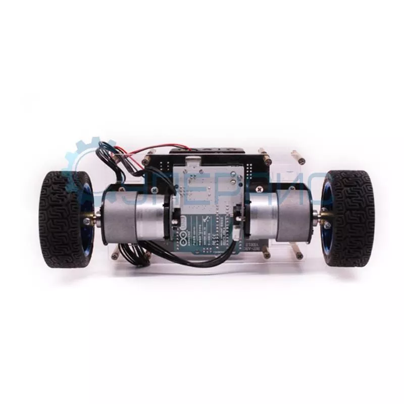 Робот-конструктор отличается быстрой реакцией и очень мобилен, благодаря конструкции шасси он способен совершать поворот на месте и маневрировать. Он создан на базе микроконтроллера Uno, совместимым со средой Arduino, и включает в себя все необходимое для сборки: два электромотора с редуктором, набор с деталями шасси, драйвер моторов, модули гироскопа и акселерометра. Питается робот от литий-ионных аккумуляторов и способен работать автономно почти целый вечер!