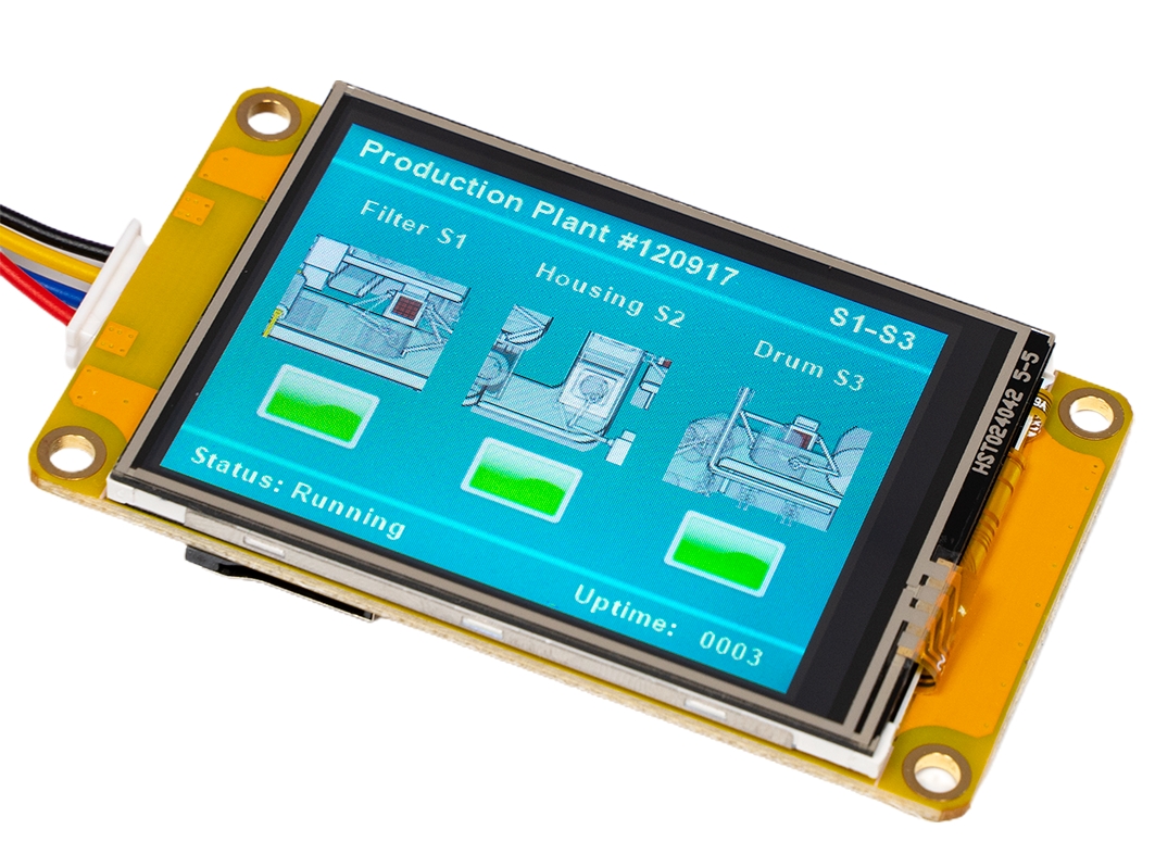 На плате в HMI-дисплеях распаян собственный драйвер, который который отвечает за отрисовку графики, обработку сигналов с тачскрина и общение с внешними контроллерами по интерфейсу UART. Это даёт возможность не передавать массивные графические данные между экраном и управляющей платой, соответственно освобождая ценные ресурсы внешнего контроллера.