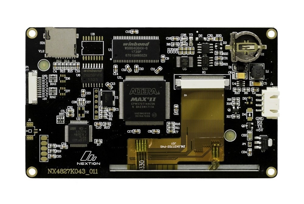 Дисплей Nextion Enhanced NX4827K043 подарит вашему девайсу привлекательный интерфейс без затрат памяти управляющей платформы. Накидайте кнопки, регуляторы, картинки в наглядном редакторе, затем залейте прошивку на сенсорный экран и ваш визуальный интерфейс готов.