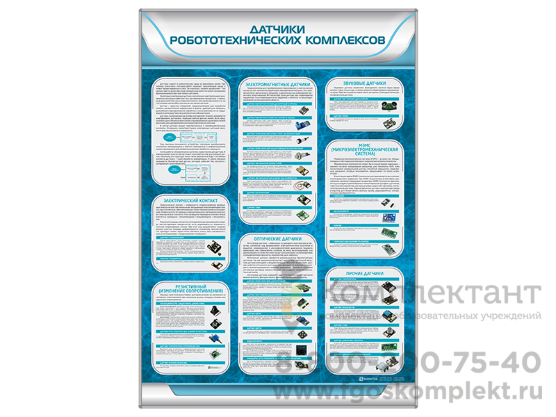 Стенд "Датчики робототехнических комплексов": наглядное пособие для изучения принципов работы сенсоров и их применения в автоматизированных системах. Идеально подходит для образовательных учреждений и кружков робототехники.