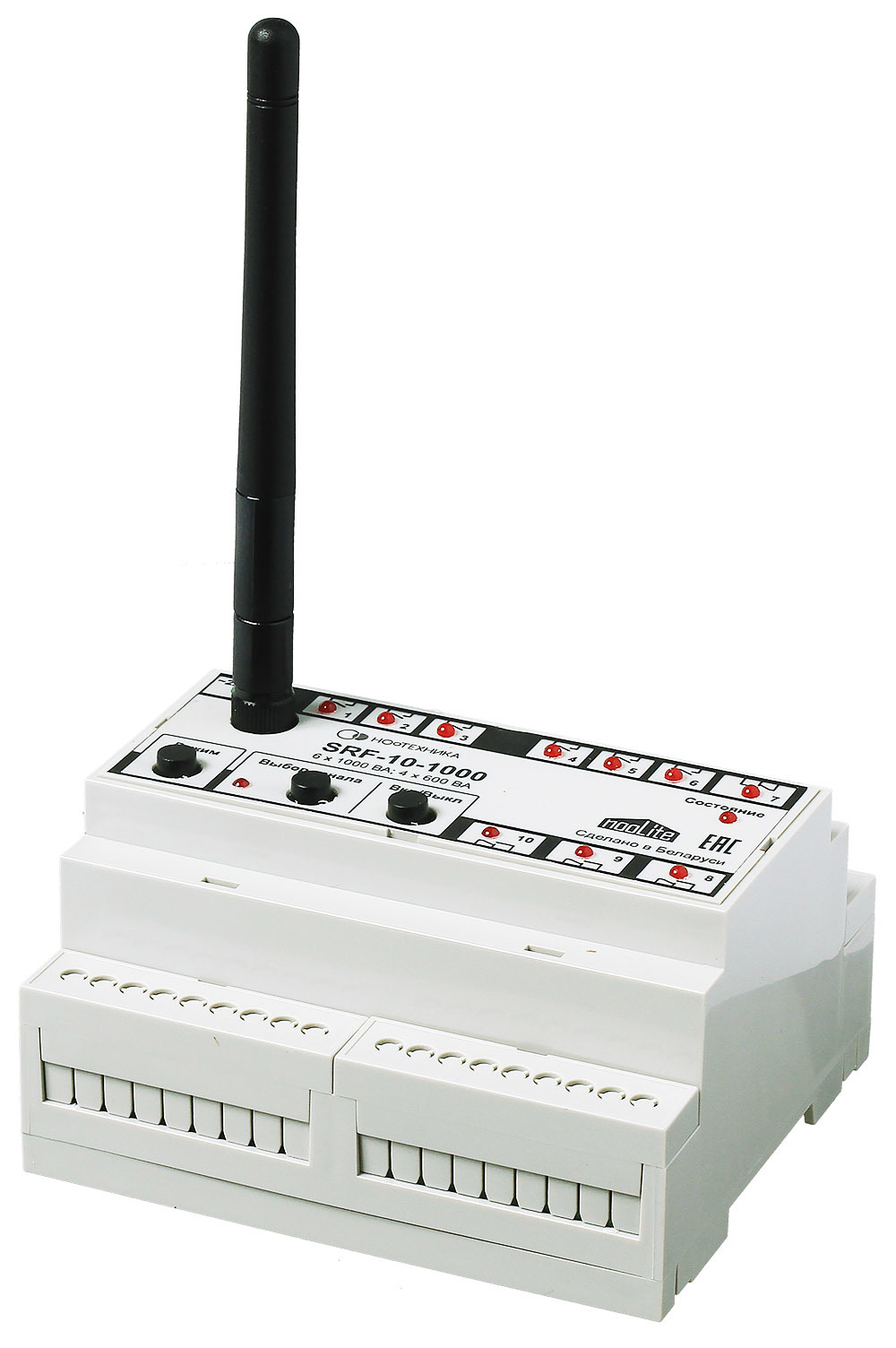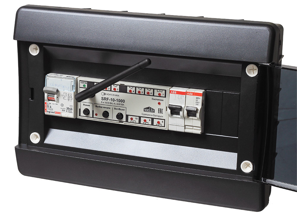 Если вы хотите автоматизировать всё освещение и электроприборы в вашем доме, то nooLite SRF-10-1000 — настоящий мастер своего дела. Блок по-взрослому крепится в электрощитке на DIN-рейку и может коммутировать до 10 каналов.