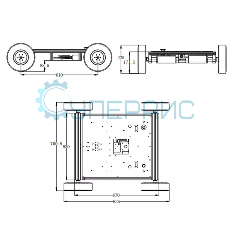 Четырехколесный робот WHEELTEC R550 PLUS на маятниковой подвеске с грузоподъёмностью 60 кг