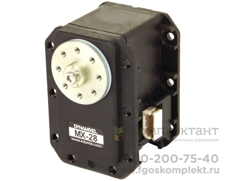 Сервомотор Dynamixel производителя Robotis. Удерживающий крутящий момент 2.3-3.1 Нм. Cкорость холостого хода 50-67 об/мин. Интерфейс подключения TTL/RS-485.