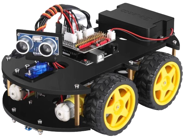 Из готового комплекта деталей вы можете создать автомобиль. В комплекте есть детали для сборки корпуса, блок управления, датчики, приводы и двигатели. Простая и понятная инструкция в комплекте позволит быстро собрать робота, а также содержит программы и коды для программирования.