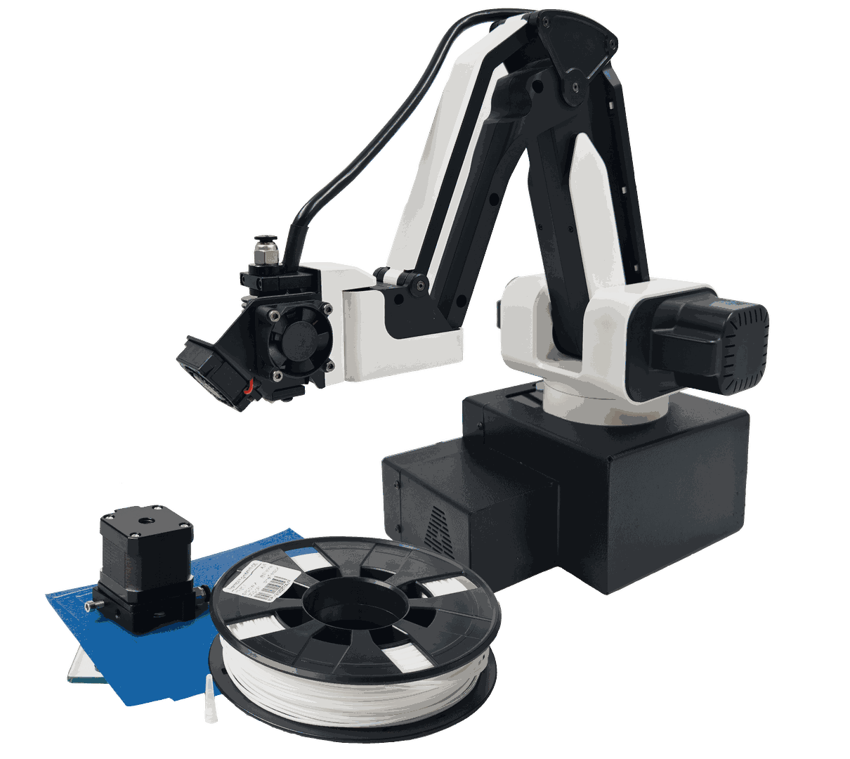 Легко заменяемые модули для манипулятора превращают обычный стол в творческую студию: создание фигурок, гравировка чехлов и даже создание собственного мини конвейера благодаря конвейерной ленте.