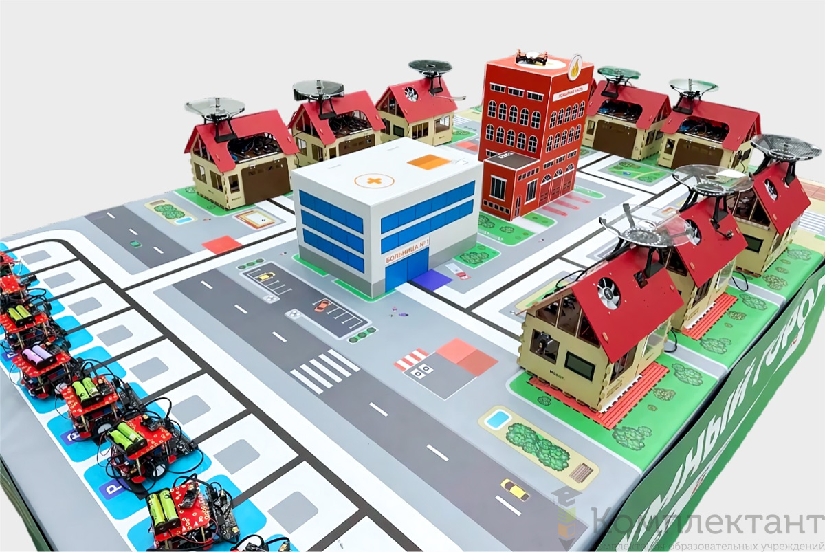 Полигон позволяет реализовать концепцию «Умный город» для учебы или соревнований, объединяя несколько образовательных решений в единую систему.