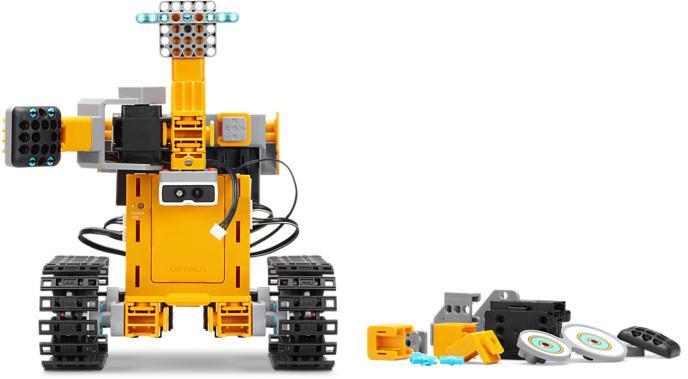 Набор Ubtech Jimu TankBot состоит из основного управляющего устройства - «мозга» робота - различных соединительных элементов, а также сервоприводов, заставляющих двигаться ваше создание. Серводвигатели обеспечивают плавные, максимально приближенные к реальности движения конечностей робота. Они выполнены по типу суставов и позволяют сгибаться и разгибаться элементам конструкции. Составные детали набора соединяются без особых усилий и каких-либо специальных приспособлений. Потому конструирование робота Jimu доступно даже детям восьми лет. Все детали набора являются экологически безопасными. Собрав своего робота из набора Ubtech Jimu TankBot, вы можете предварительно просмотреть все движения, которые он будет выполнять. Для этого в запущенном Android- или iOS-приложении необходимо нажать кнопку Старт. Каждый собранный вами робот может быть запрограммирован по вашему усмотрению. Поддайтесь своей фантазии и создайте бота с уникальным набором функций и движений. Дизайн