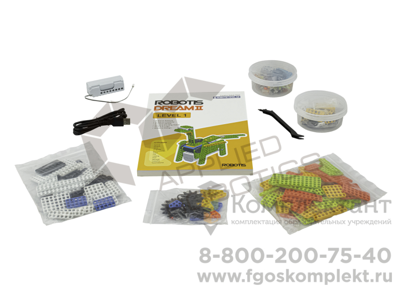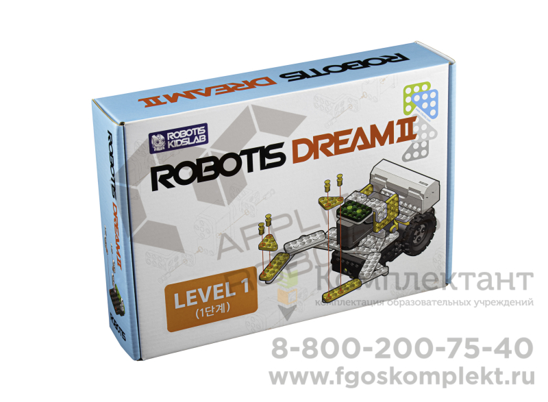 ROBOTIS DREAM II Level 1 - образовательный робототехнический набор, предназначенный для изучения основ робототехники, базовых принципов работы механизмов и основ кинематики и конструирования простейших подвижных моделей роботов, приводимых в движение электродвигателем. Набор Level 1, являющийся начальным комплектом обновленной серии ROBOTIS DREAM, позволяет учащимся познакомиться с основными принципами физики и электричества.