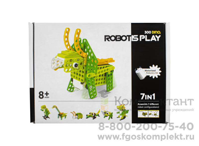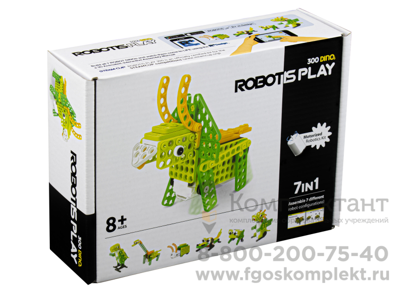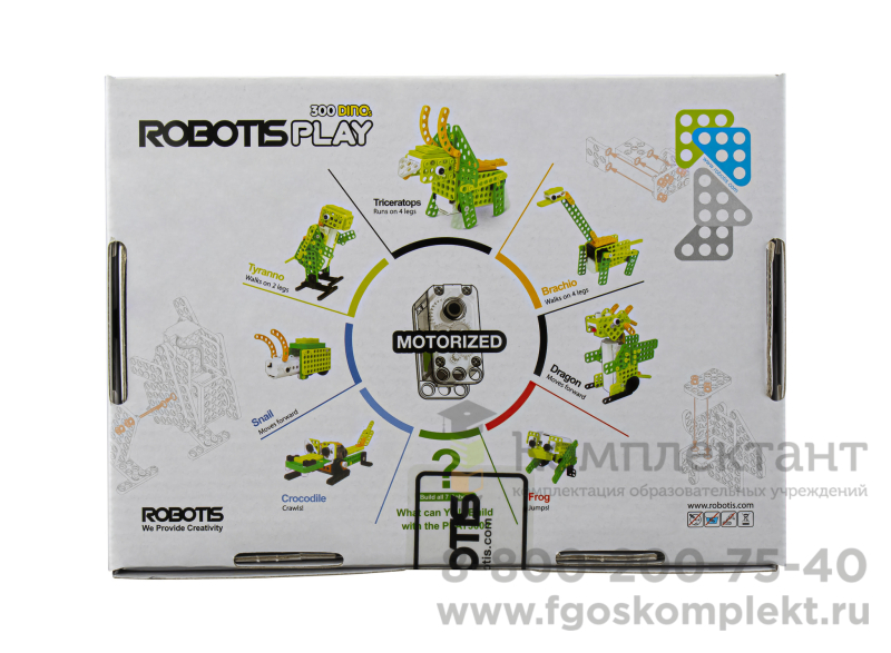 ROBOTIS PLAY 300 DINOs - отличный способ научить детей радоваться робототехнике с раннего возраста.Соберите подвижные модели динозавров с различной кинематикой:брахиозавра, трицератопса, тиранозавра и др. Предлагается 7 типовых моделей роботов-животных для сборки, но разнообразие универсальных деталей позволяет детям развивать фантазию и творческое мышление, создавая собственные уникальные модели.