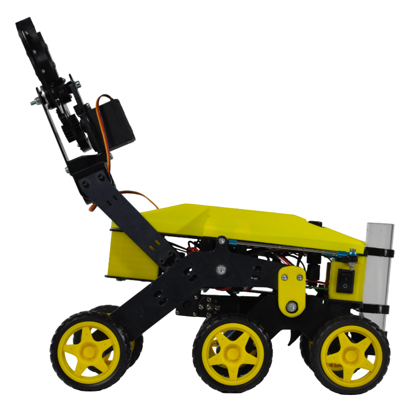 Hобототехнический конструктор на базе шестиколесного шасси. На робота установлено навесное оборудование - устройство имитации