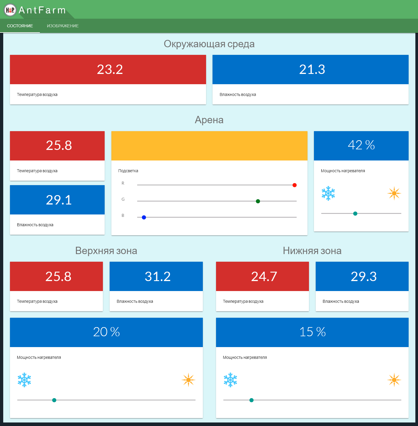 Управление всеми режимами работы и мониторинг за показаниями осуществляются через Web-интерфейс, доступный при беспроводном Wi-Fi подключении микрокомпьютера к локальной сети.