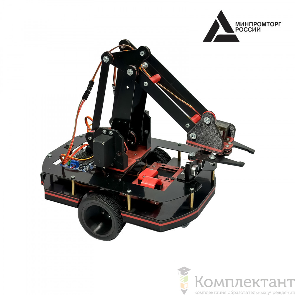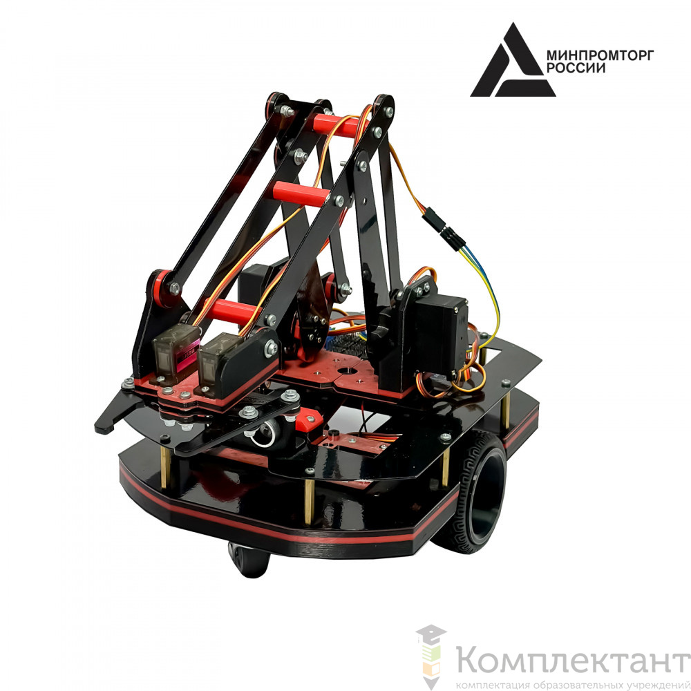 Учебный конструктор для создания автономных подвижных манипуляционных устройств. Дополнительно оснащается датчиками и модулями позволяющими расширить область его применения. Комплектация включает детали для сборки механических и пневматических систем захвата предметов. Может быть укомплектовано модулем технического зрения для реализации возможностей управления роботом в режиме FPV или самостоятельного слежения роботом за предметом.