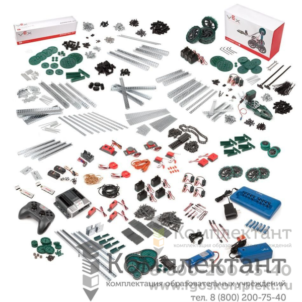 Супер набор для класса и соревнований включает все необходимое для создания, мощного и работоспособного робота, как для учебных целей, так и для соревнований VEX Robotics Competition (VRC).