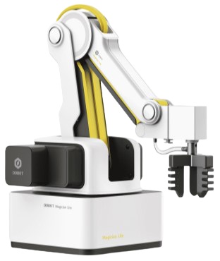 Magician Lite компактный и весит всего 2,4 кг. Этот портативный робот имеет радиус действия 340 мм и рассчитан на максимальную нагрузку 0,25 кг. Робот совместим с разными сменными насадками, например с присоской, мягким захватом, зажимом для ручки. Встроенная функция обнаружения препятствий делает робот безопасным при работе с детьми.
