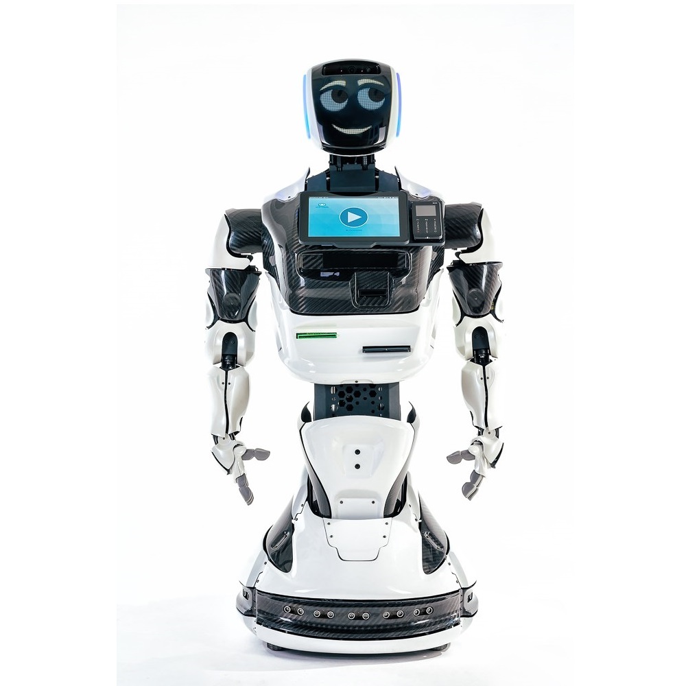 Размеры робота Минимальные: 1485х740х716 (ВхШхД), мм Предельные: 1585x2060x716 (ВхШхД), мм Размеры зарядной станции 700x650x300 (ВхШхД), мм Размеры транспортировочного кофра 1645x920x1010 (ВхШхД), мм Масса робота До 130 кг Масса зарядной станции 10 кг Масса общая с упаковкой До 205 кг Время зарядки робота Зарядная станция: до 10 часов Кабель питания: до 8 часов Время автономной работы До 8 часов Скорость передвижения 0,2 м/с Привод 2 колеса с подруливающими роликами Руки-манипуляторы 2 манипулятора, движение в 6 (+1) степенях свободы Движение головы Движение в 2 степенях свободы Движение торса Движение в 3 степенях свободы, изменение высоты торса Камера Распознавание лиц: до 30 к/с при разрешении 1280х720 Поиск лиц: до 25 к/с при разрешении 1920x1080 Телеприсутствие: до 30 к/с при разрешении 640х480 Поиск зарядной станции: до 30 к/с при разрешении 640х480 Микрофон Всенаправленный микрофонный массив* Динамики 20 ватт 2 шт. Монитор 10.1” тачскрин дисплей с разрешением 1280x800 Датчики Ультразвуковые датчики 16 шт., Инфракрасные датчики 16 шт, 3D сенсор 1 шт., Датчики прикосновений 4 шт. Материал корпуса Пластик Цвет лицевой матрицы и подсветки RGB (полноцветный), сегментная подсветка Произношение речевых модулей Синтез речи Произвольное перемещение Есть Автоподъезд к зарядной станции Есть Сервис лингвистической базы Есть Комплектация Робот Promobot; Джойстик беспроводной; Инструкция по эксплуатации (Руководство пользователя); Зарядная станция; Кабель для зарядной станции; Транспортировочный кофр.