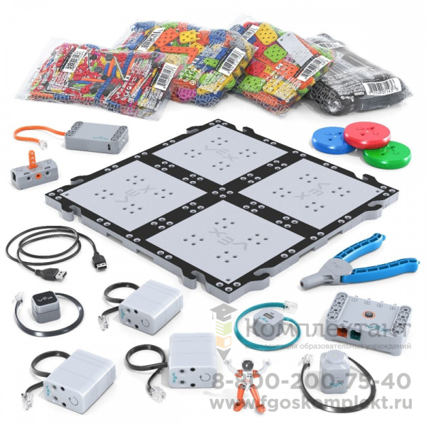 Наборы VEX GO предназначены для учащихся начальной школы. Данная платформа обладает ярким дизайном и удобным программным обеспечением на русском языке и обучающими материалами для полного погружения учащихся в процесс программирования собранных роботов. Наборы включают в себя детали для сборки моделей, инструмент для более удобной сборки/разборки роботов, приводы (моторы), позволяющие реализовывать не только подвижные платформы, но и системы захвата объектов, электрический магнит, который позволяет манипулировать металлическими объектами на поле, реализуя операции по перемещению и сортировке, датчики касания и расстояния, контроллер управления и аккумулятор.