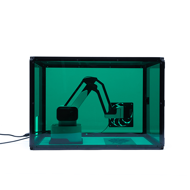 Этот защитный корпус разработан для работы с лазерным модулем четырёхосевого манипулятора. Благодаря умному переключателю блокировки, вытяжке и прочным материалам, корпус обеспечивает полную защиту. Автоматический переключатель поставит лазер на паузу, если защитный корпус будет открыт. Мощная вытяжка удаляет неприятный запах, который может образоваться в процессе. А прочные материалы делают конструкцию устойчивой и долговечной.