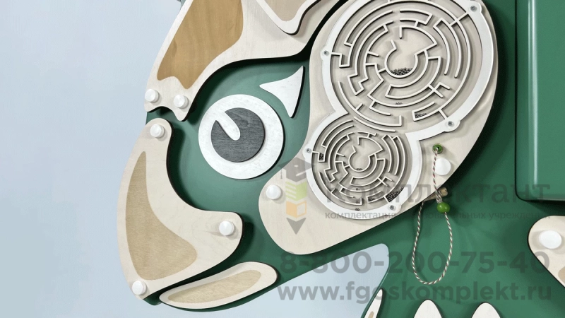 На центральной части бизиборда находится интерактивная сенсорная панель, с комплектом лучших образовательных программ АЛМА. Более 200 интерактивных игр по дошкольной образовательной программе.