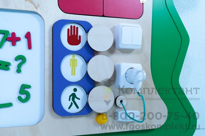 Комплектация: Бизиборд из МДФ с трехслойным покрытием безопасной краской на водной основе