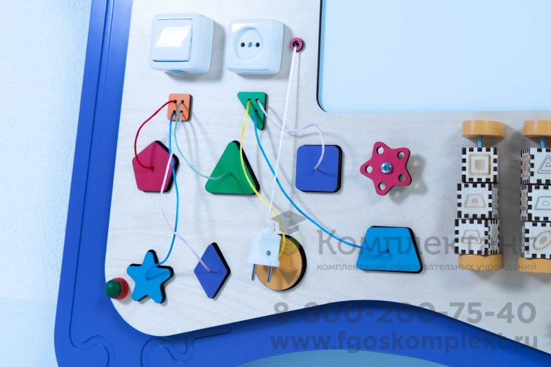 Комплектация: Бизиборд из МДФ с трехслойным покрытием безопасной краской на водной основе