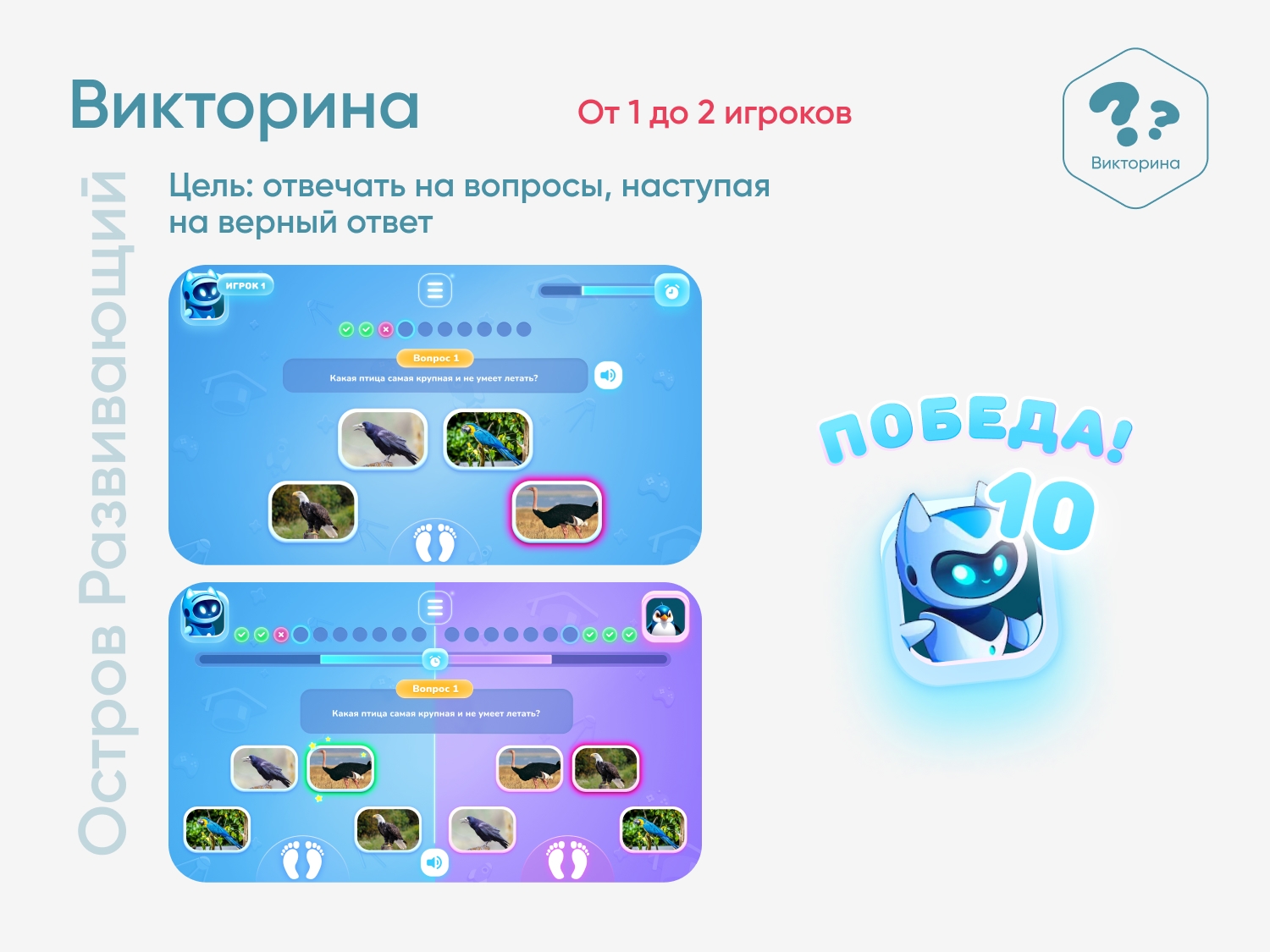 Цель игры — выбрать верный ответ, определив какой атрибут подходит для профессии. Одна игра состоит из 5 вопросов. Уровней сложности нет.