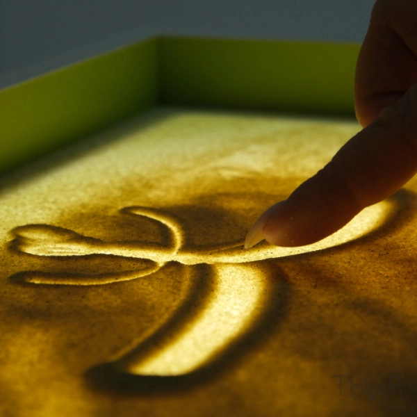 Детсадовцам тренировать ловкость пальчиков с помощью светового планшета и песка очень полезно. Одновременно с моторикой развивается речь. Совершенствуется графомоторика.