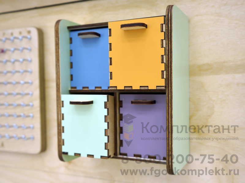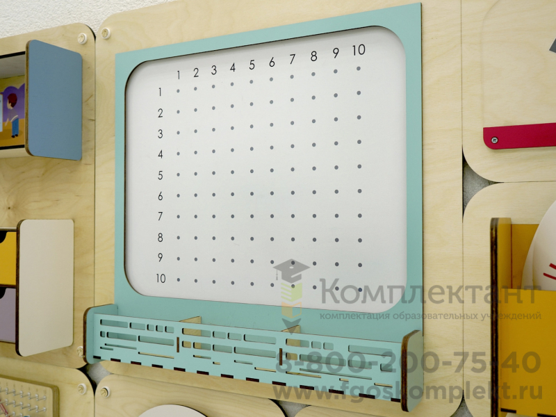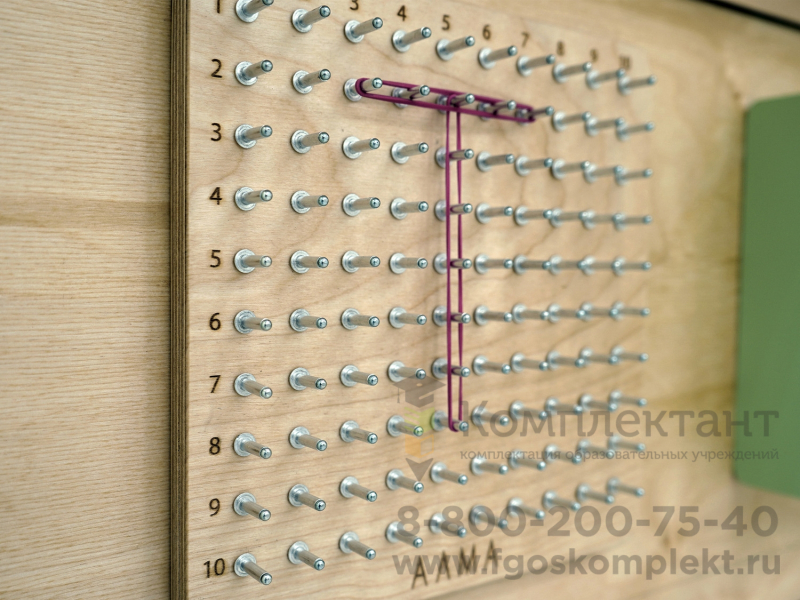 3. Модуль «Геоборд». С помощью резинок малыши могут выкладывать буквы и символы, что педагог рисует на магнитно-маркерной доске, принт которой повторяет поверхность геоборда. Это развивает мелкую моторику рук, а стимуляция моторных навыков пальцев рук у детей активизирует речевой центр в головном мозге.