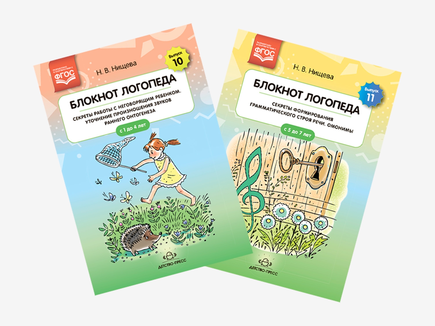 - Блокнот логопеда. Выпуск 10. Секреты работы с неговорящим ребенком. Уточнение произношения звуков раннего онтогенеза. С 1 до 4 лет. ФГОС