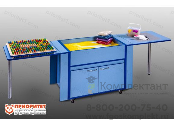 - Дидактический модуль «Познаватель» в закрытом виде представляет собой компактный стол, откидные модули расположены справа и слева, вся дидактика убрана в специальный шкаф.