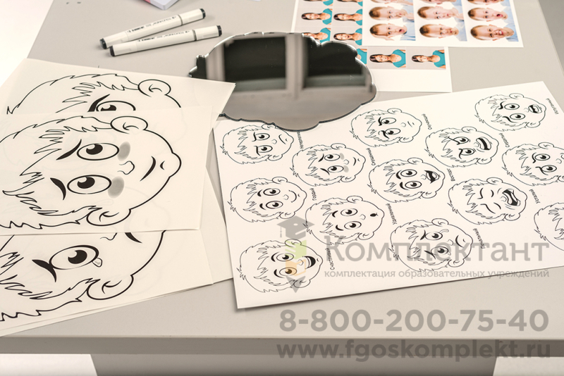 • демонстрационные карточки с контурным изображением лиц с эмоциями;