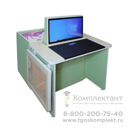 Комплектация: Автоматизированное рабочее место психолога, Встроенный сенсорный антивандальный монитор, Встроенный сенсорный пульт управления рабочим местом, Встроенный производительный ПК, Встроенный отсек для развития мелкой моторики с двумя видами песка, Многофункциональный дидактический модуль, Комплект профессиональных дидактических тренажеров, Комплект специализированного программного обеспечения, Беспроводная клавиатура и мышь, Акустическая система, DVD-привод, Вэб-камера, Профессиональные методические рекомендации по работе со столом психолога-дефектолога, Паспорт оборудования, Сертификат