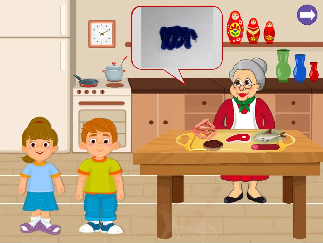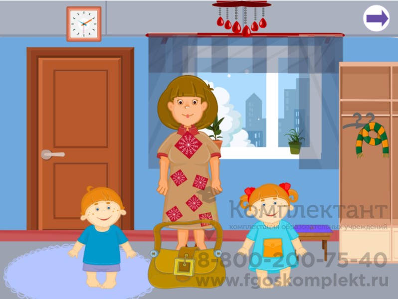 Каждый ход ребенка вызывает отклик на картинке. К примеру, игрушки попадают в мамину сумку. Т.е. ребенок видит, как его ответы на ваши вопросы влияют на развитие истории. Это мотивирует детей участвовать в диалоге.