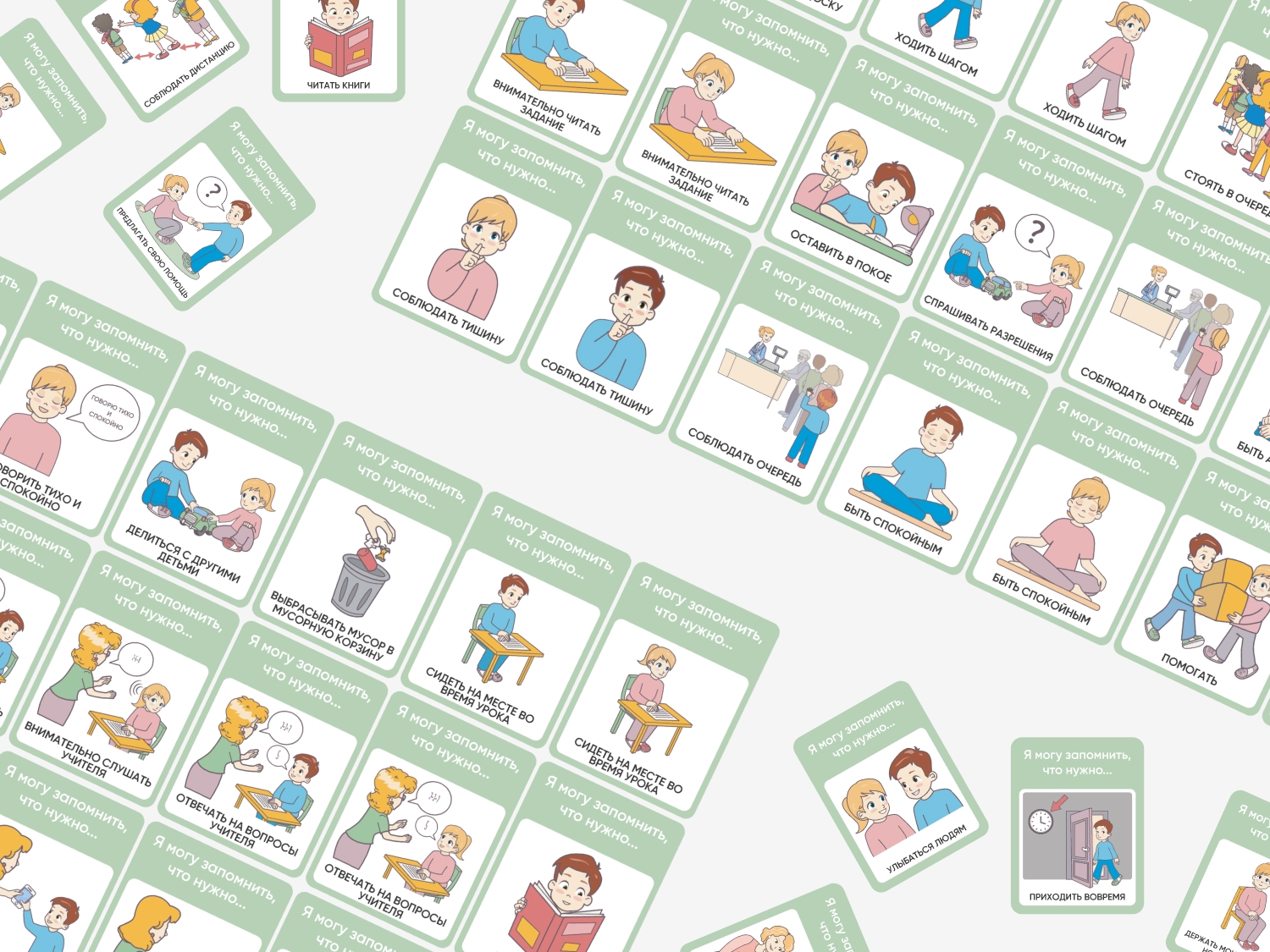 Карточки изготовлены из гладкого пластика полилит, который подходит для принтерной печати. Рисунки не стираются, карточки можно мыть и дезинфицировать, что особенно полезно при работе с детьми с повышенными потребностями. Продукция отвечает требованиям ФГОС ДО, СанПиНа и критериям программы «Доступная среда».