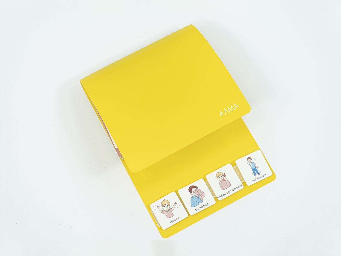 В комплекте есть тематические наклейки на страницы (для быстрого ориентирования) и наклейка-адресник. На задней стороне книги печать 3х символов: «да», «нет», «не знаю» - они позволяют ребёнку быстро сообщить собеседнику краткий ответ.