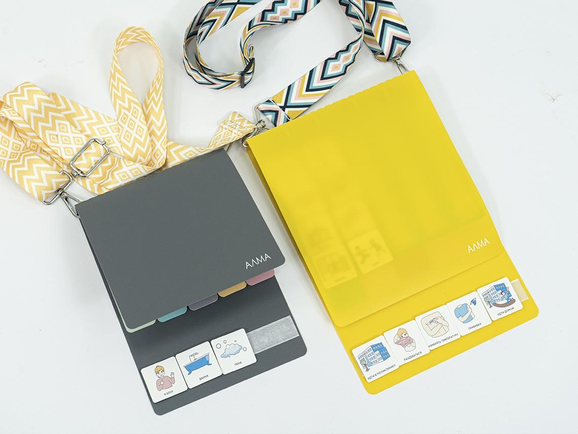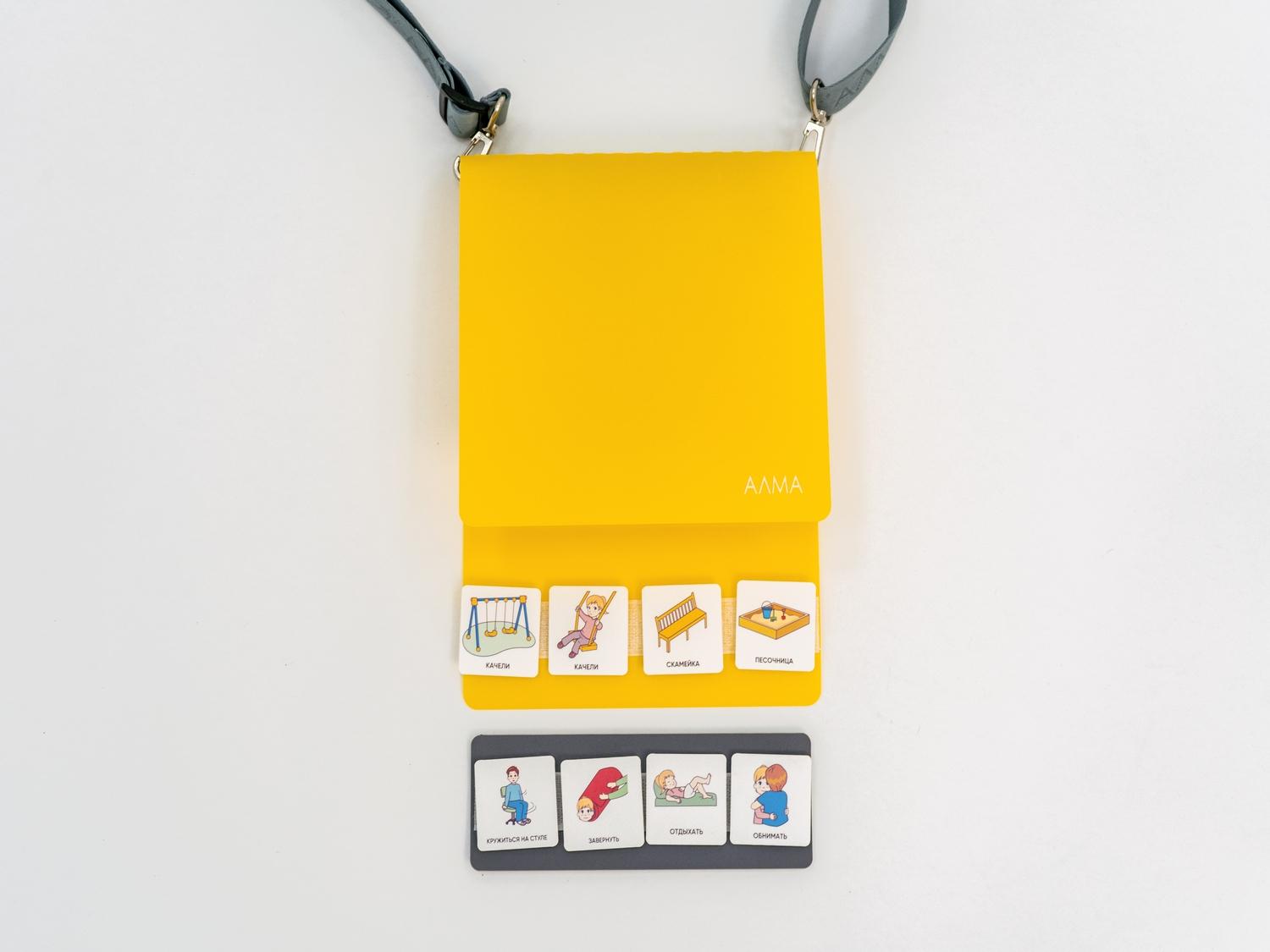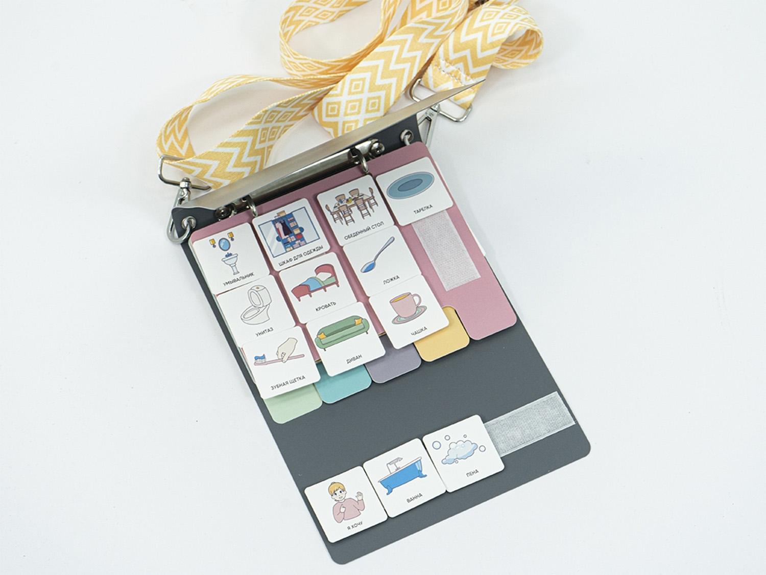 Инструмент для альтернативной/дополнительной коммуникации у детей, имеющих проблемы с речью (в том числе, РАС). Это пластиковая папка на кольцах, куда вкладываются жёсткие листы с рядами ленты-липучки велкро. На ленту приклеиваются карточки PECS/ПЕКС, служащие средством обмена информации между неговорящим ребёнком и взрослым.
