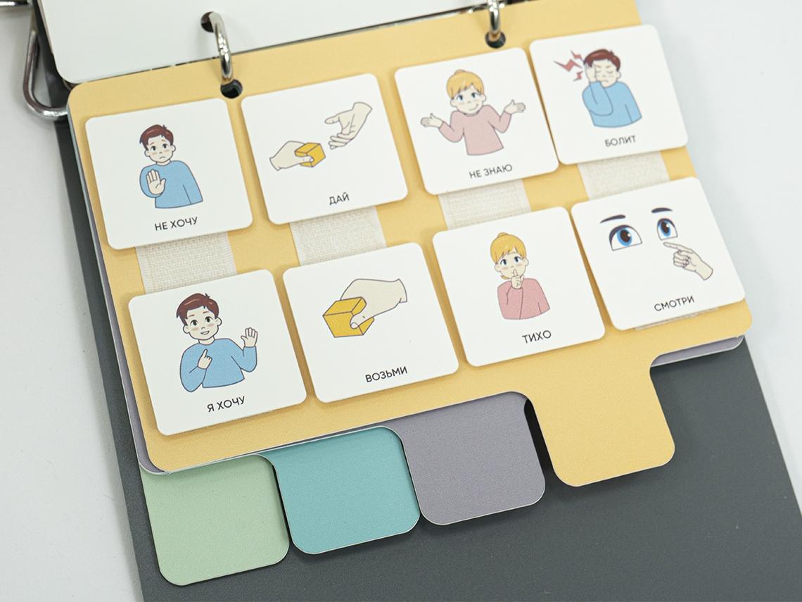 Коммуникативная книга для карточек PECS/ПЕКС подходит не только детям с аутизмом, но и детям с тугоухостью, ЗПР, ДЦП, алалией, тяжёлыми случаями заикания.