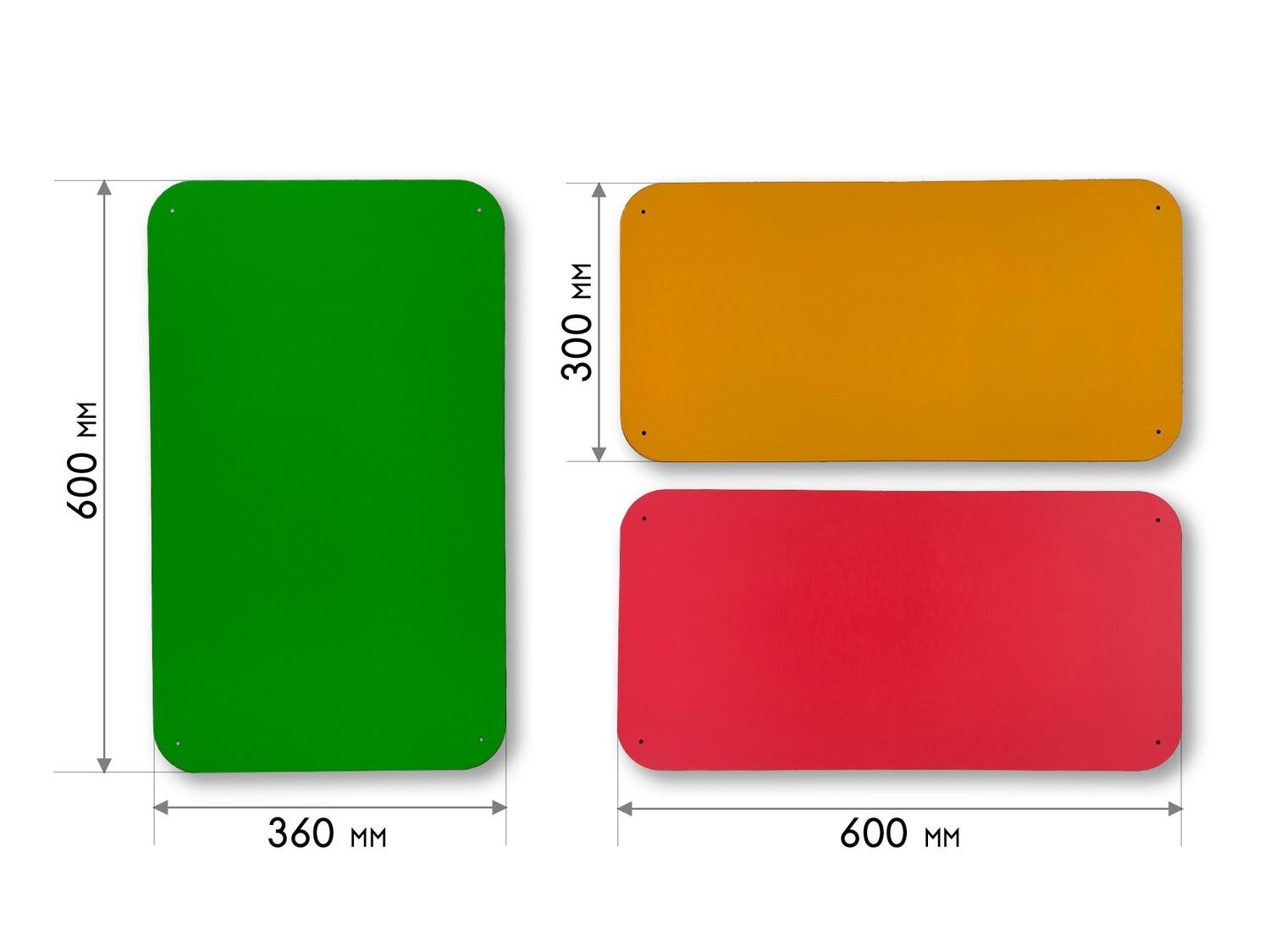 Дополнительные модули бывают однотонные и с тематическими иллюстрациями, подходящими под тематику дидактических панелей. Разнообразие размеров способствует декорированию стен различной конфигурации и масштабов. Параметры варьируются от совсем маленьких модулей 300х300 мм до крупных размеров 600х600 мм.