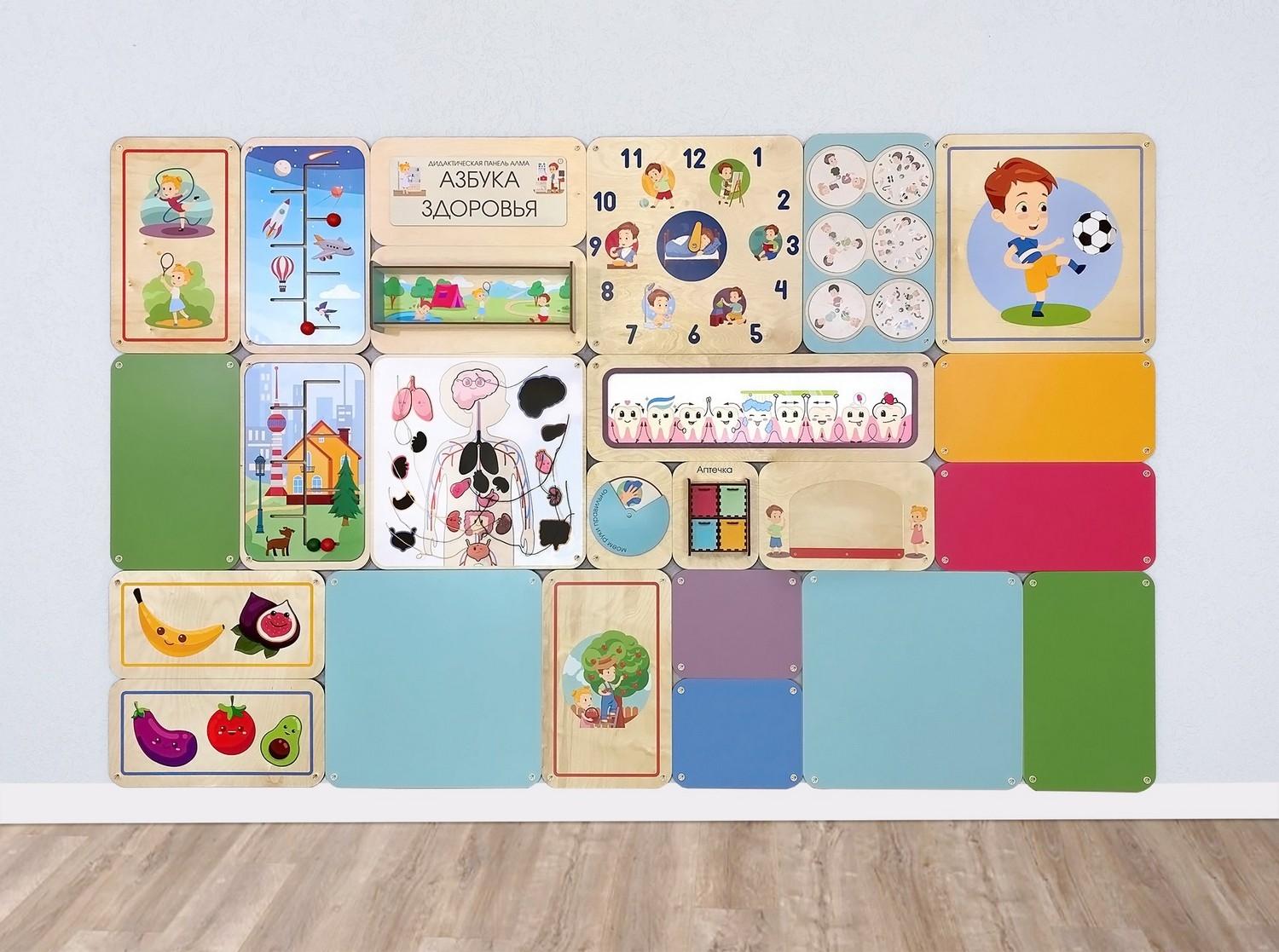 Набор дополнительных модулей для комбинации с дидактическими настенными панелями АЛМА. Отличное интерьерное решение для оформления помещений в едином стиле.