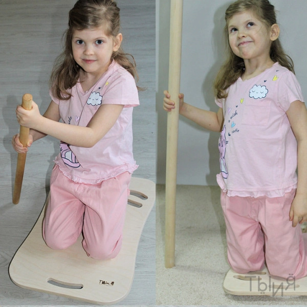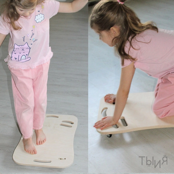Может использоваться в движении, что усложняет упражнения в сравнении с обычными балансирами и добавляет элемент игры в занятия. Дети могут стоять или сидеть на платформе и перемещаться по комнате, при этом развивая координацию и баланс.