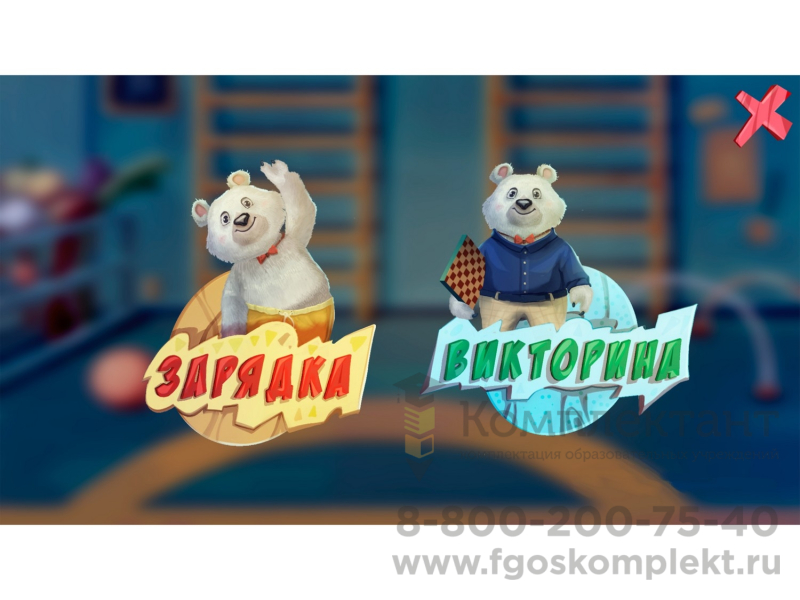 Белый медведь УМКА с помощью бесконтактного сенсорного контроллера поможет провести педагогу весёлую зарядку. Kinect улавливает характерные движения человека и передаёт их персонажу на экране. Ведущий вместе с медведем может показать ребятам: