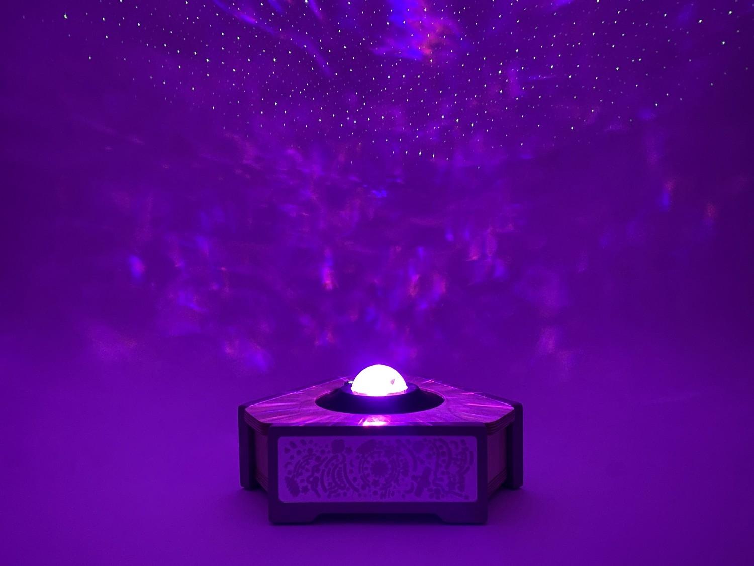 У проектора есть 10 режимов космических спецэффектов, которые можно переключать с пульта дистанционного управления. Яркость свечения настраивается в трёх разных режимах. Есть таймер автоматического отключения.