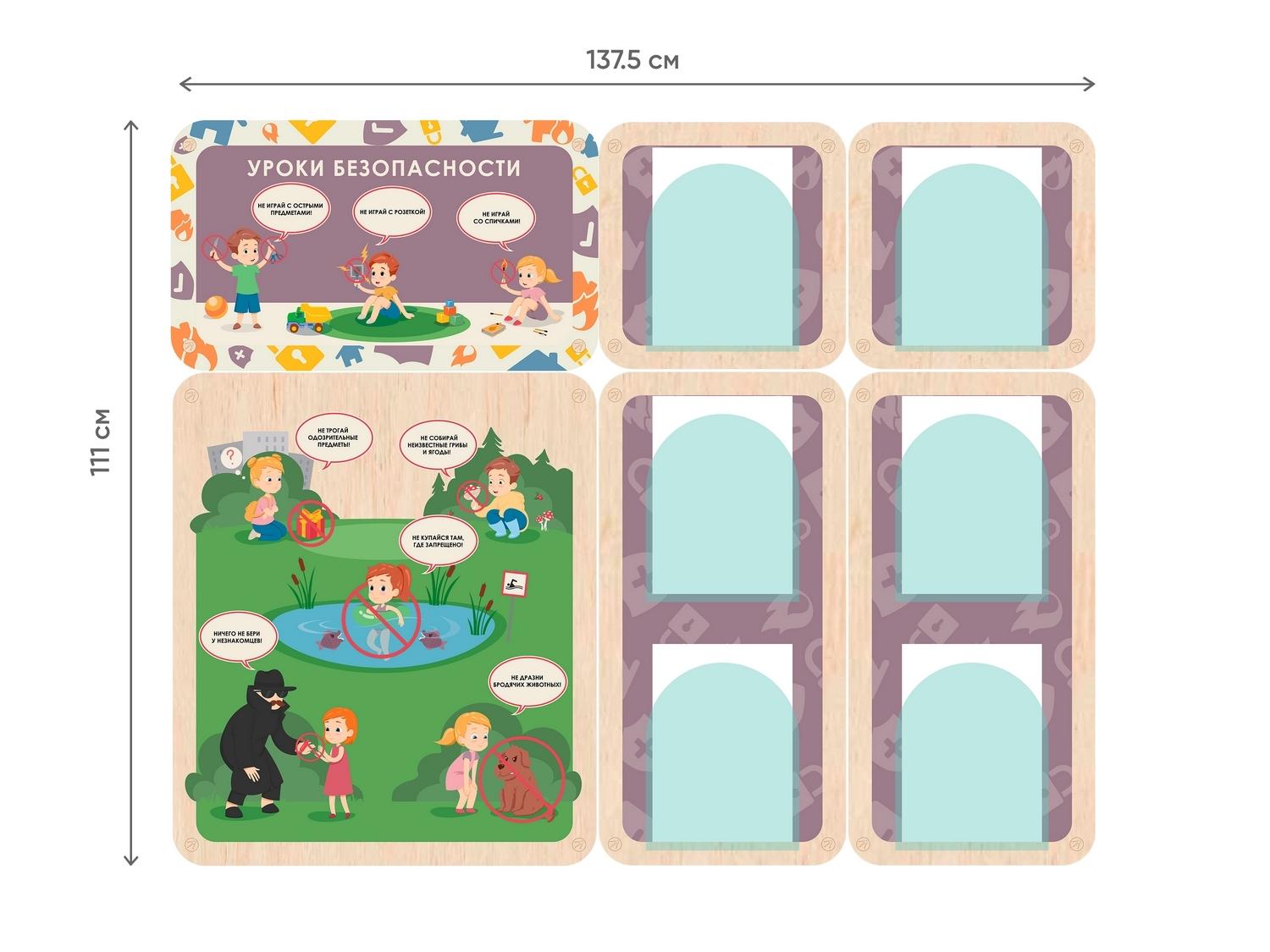 Информационно-образовательная панель для оформления пространства стен на тему навыков безопасного поведения детей в социуме. Это ценный инструмент в наглядном обучении дошкольников правилам поведения, которые помогут им избежать потенциальных опасностей. Стенд подходит для декорирования пространства коридоров и холлов в детских садах и организациях дополнительного детского образования.